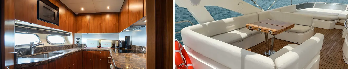 The entire kitchen was also redesigned to suit the demands of a modern day luxury yacht. With a fully modernised galley and updated finishes throughout the interiors, Jude’s interiors now blend comfort with practicality for the ultimate charter experience.