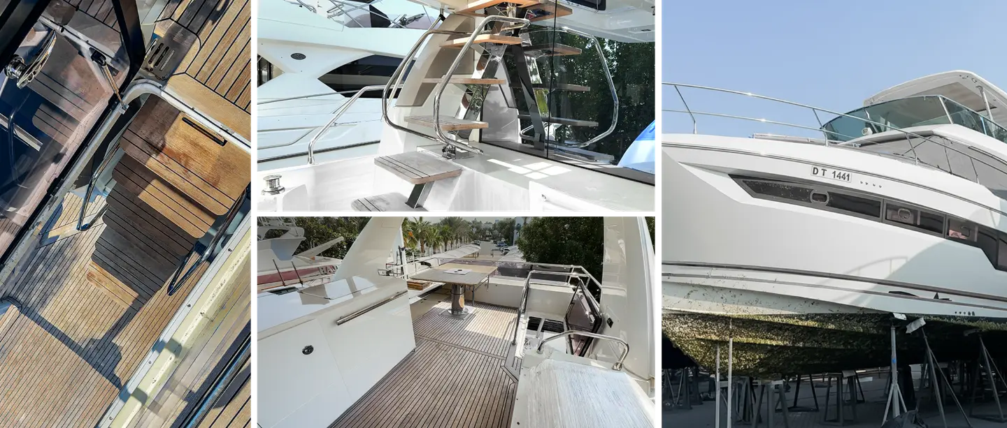 Sol has returned to charter operations fully restored. Her hull is protected, her exterior polished, and her presentation sharp enough to compete in Dubai’s charter market.