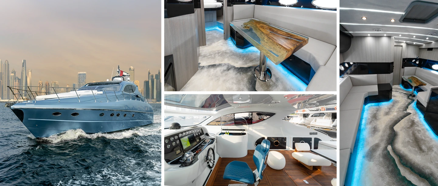 The result is simple yet distinctive. The silver-blue finish gives Sunset a look unlike any other yacht in Dubai’s waters, matched by performance that reflects her renewed strength and commanding presence.