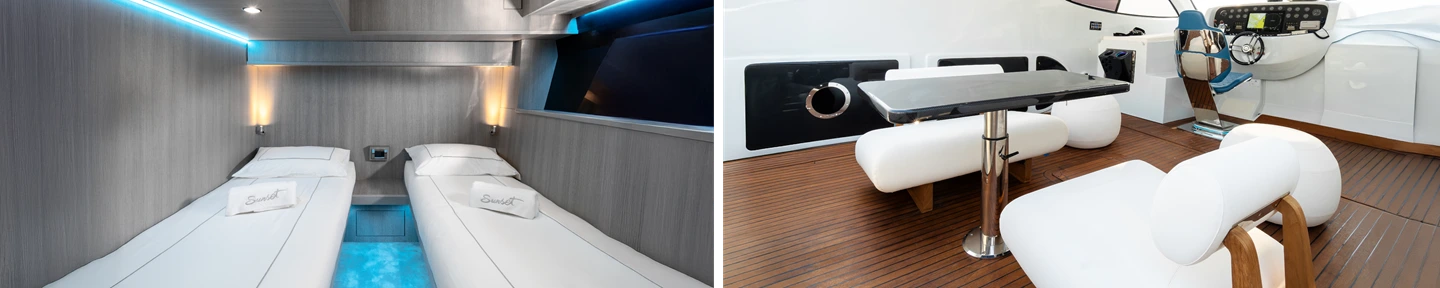 Sunset now sails again, restored in form and spirit. Her hull gleams, her systems run effortlessly, and her interiors once again reflect the high standards of a premium charter vessel.